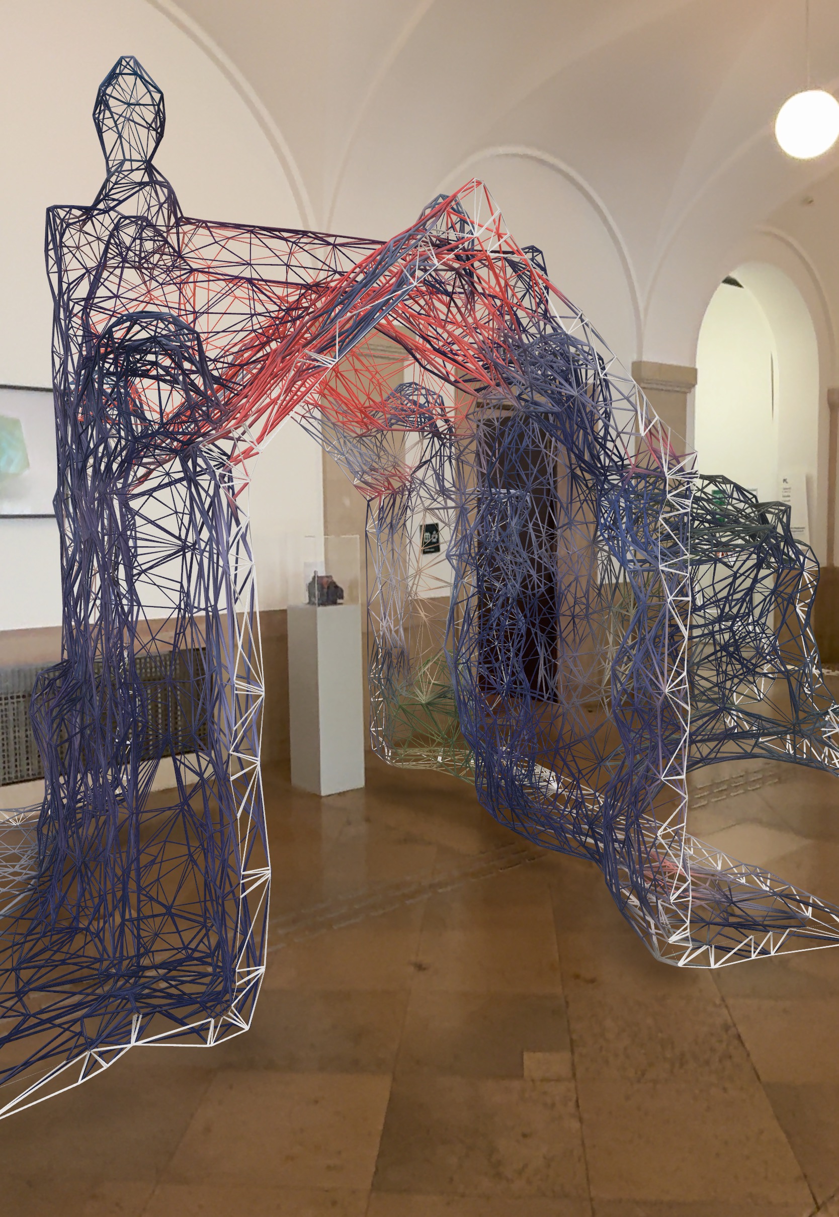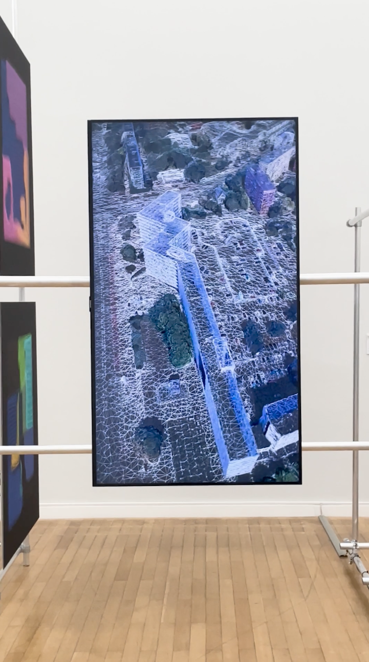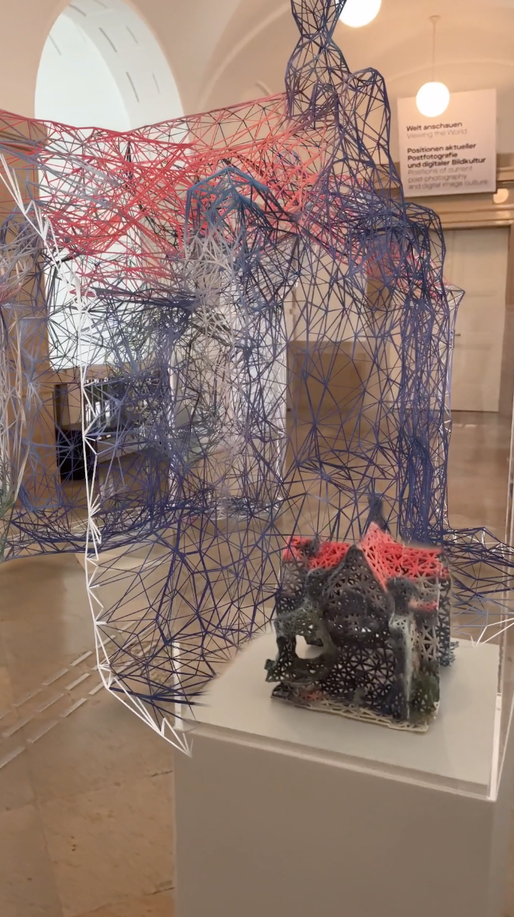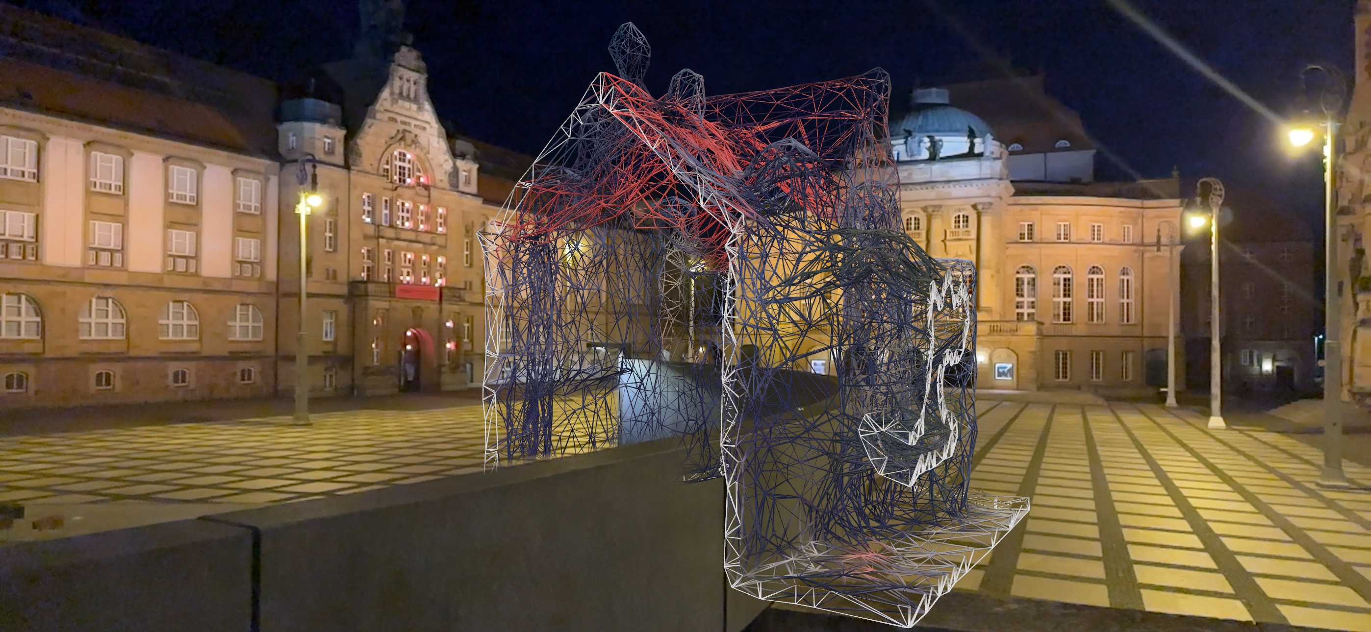 Since 2018, Mohné has been working with three-dimensional models of urban structures based on data from virtual globes such as Google Earth. A specially developed, analogue-digital process in which the artist creates images of the selected location from all sides using virtual "camera drones" in the Google Earth app rather than in real space, and processes them further via photogrammetry, serves as the basis for a site-specific work that "mirrors" the direct surroundings of the gallery space. The virtual model of the neighborhood, realized as a video, augmented reality aswell as the 3D-printed Sculpture appears distorted, the forms simplified, glitches and disturbances create alienation, caused by the algorithms as well as the artistic intervention in the software. The juxtaposition of the real place with its virtual counterpart reveals an ambivalent relationship between the recorded space and its image. In these projects, the artist addresses the new three-dimensional media as a continuation of landscape painting and architectural photography. Just as these have influenced our perception of nature up to now, the new virtual three-dimensional simulations as a new form of documentary images will also shape our relationship to the world.