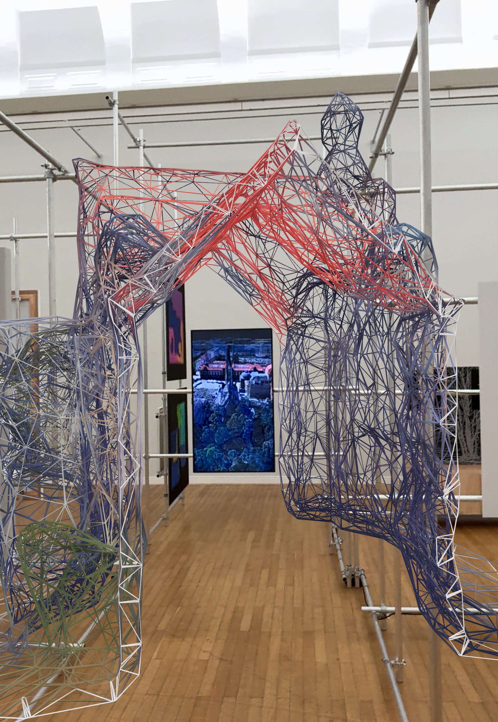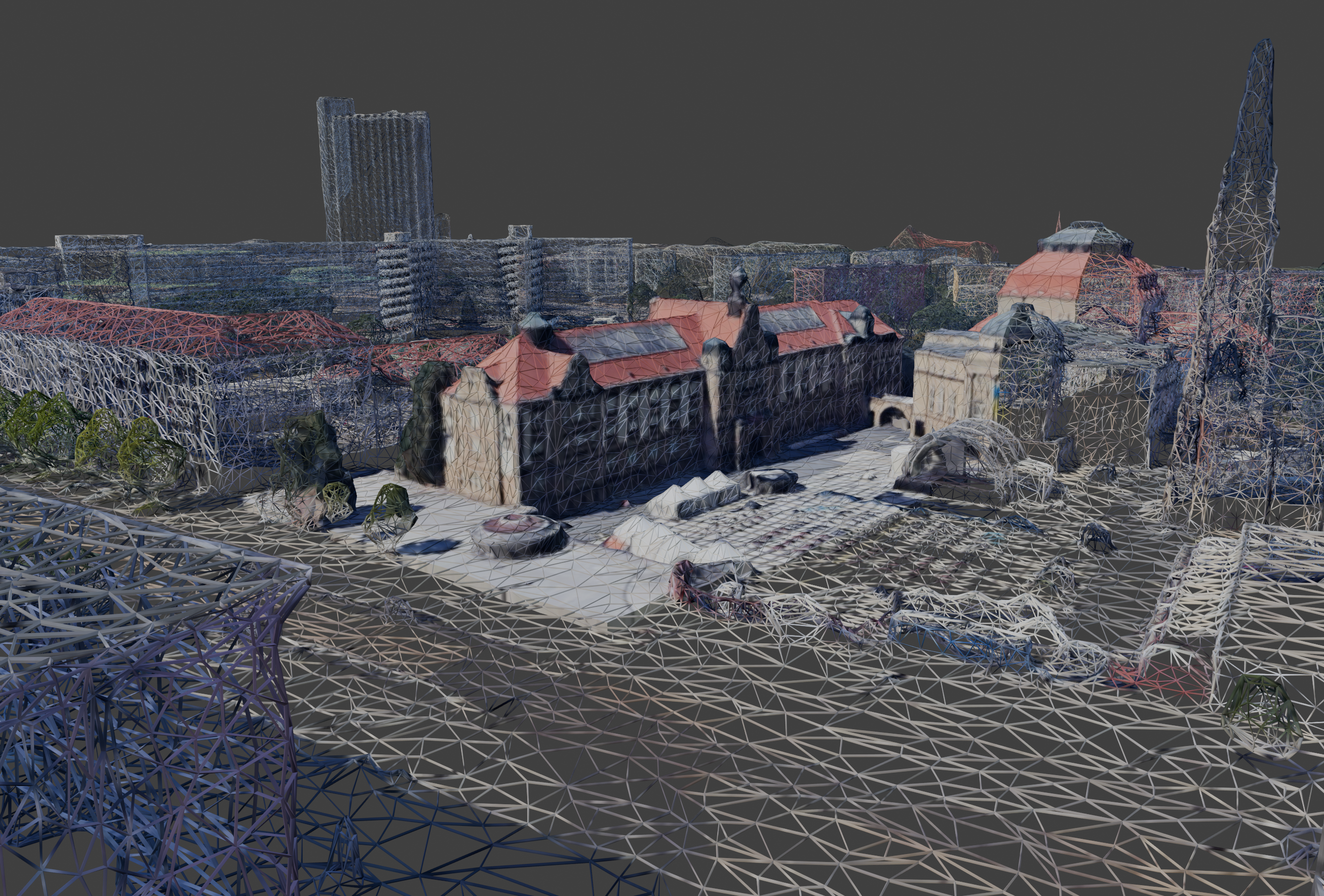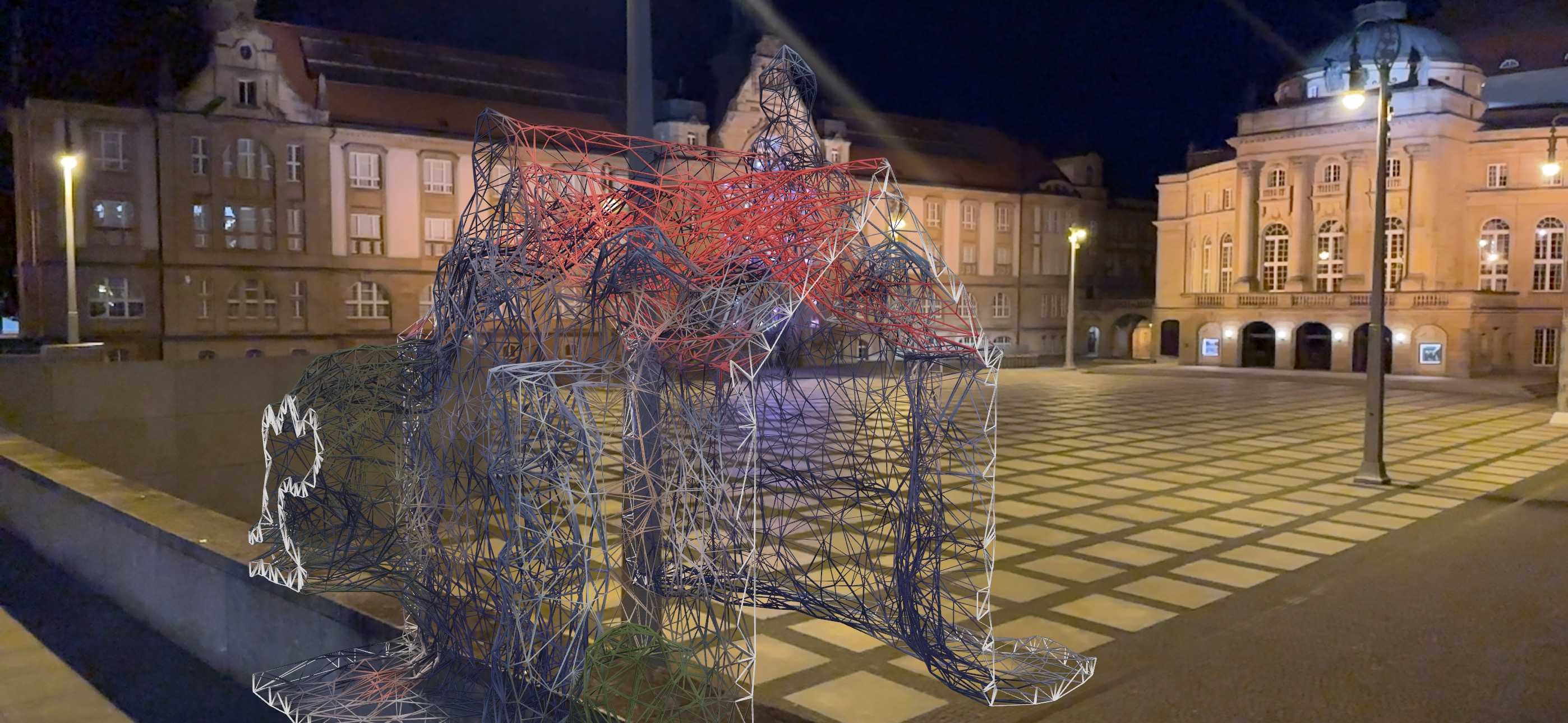 Since 2018, Mohné has been working with three-dimensional models of urban structures based on data from virtual globes such as Google Earth. A specially developed, analogue-digital process in which the artist creates images of the selected location from all sides using virtual "camera drones" in the Google Earth app rather than in real space, and processes them further via photogrammetry, serves as the basis for a site-specific work that "mirrors" the direct surroundings of the gallery space. The virtual model of the neighborhood, realized as a video, augmented reality aswell as the 3D-printed Sculpture appears distorted, the forms simplified, glitches and disturbances create alienation, caused by the algorithms as well as the artistic intervention in the software. The juxtaposition of the real place with its virtual counterpart reveals an ambivalent relationship between the recorded space and its image. In these projects, the artist addresses the new three-dimensional media as a continuation of landscape painting and architectural photography. Just as these have influenced our perception of nature up to now, the new virtual three-dimensional simulations as a new form of documentary images will also shape our relationship to the world.