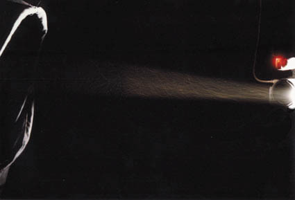 Dust, collecting in the light beam of a film projector, is being recorded by a video camera. The light beam is being absorbed by a velvet "light bag", therefore the projection itself is invisible.