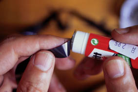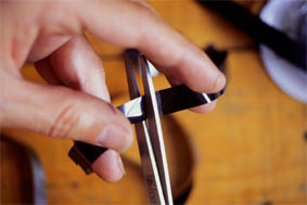 losen Bänder werden mechanisch mit der Schere geschnittenund