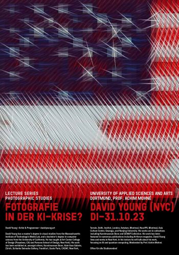 David Young has a master's degree in visual studies from the Massachusetts Institute of Technology's Media Lab, and a bachelor's degree in computer science from the University of California. He has taught at Art Center College of Design (Pasadena, CA) and Parsons School of Design, New York. David Young lives and works in New York. In his lecture he will talk about his work, focusing on Al and quantum computing. Moderated by Prof. Achim Mohné.