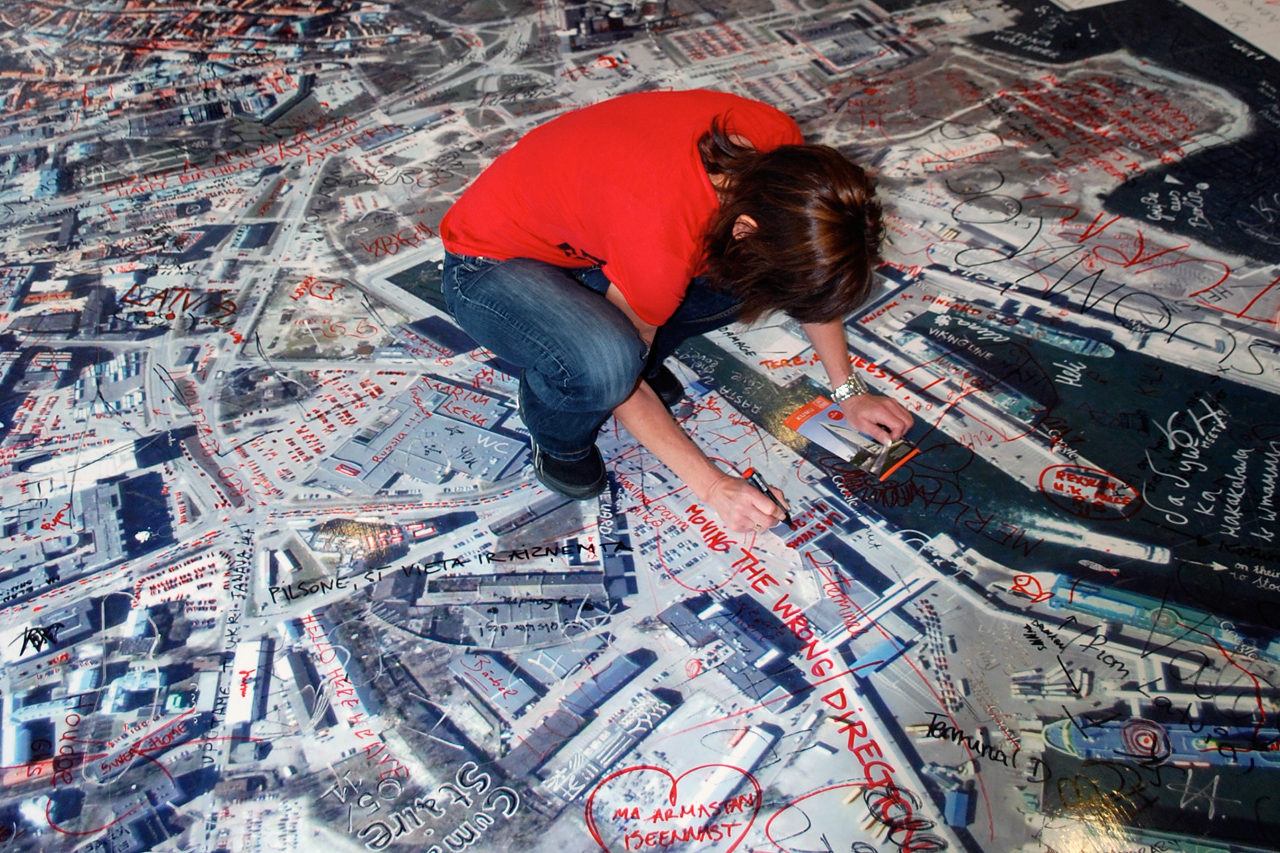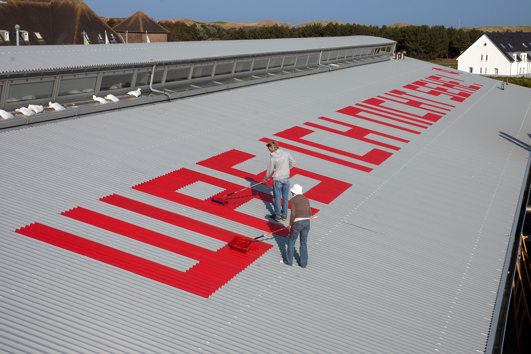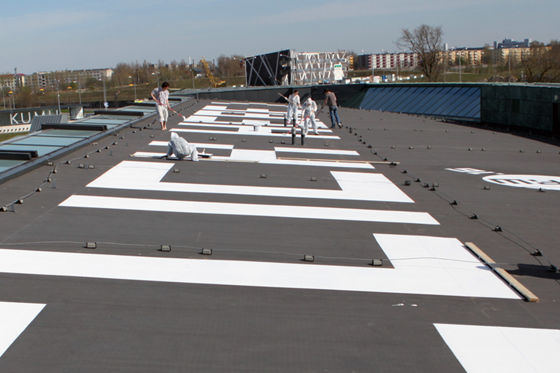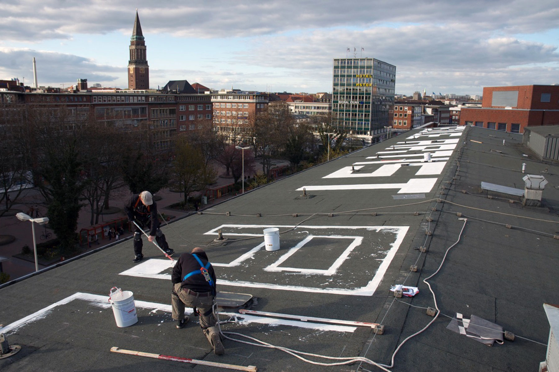 Established at the crossover of art, literature, design, internet-culture and navigation technology, REMOTEWORDS installs messages on roofs of cooperating partners such as cultural institutions. Applied in the form of permanent, capital letters, each collaboratively developed message represents a semantic unit with its particular hosting location and the environment.