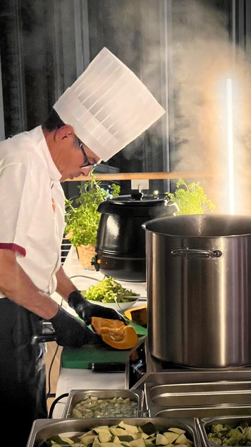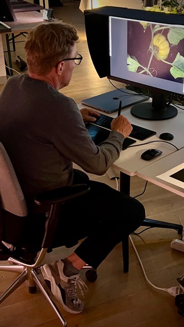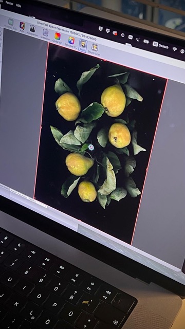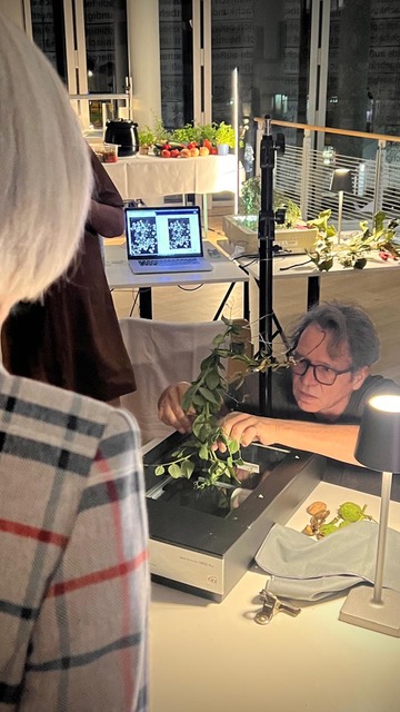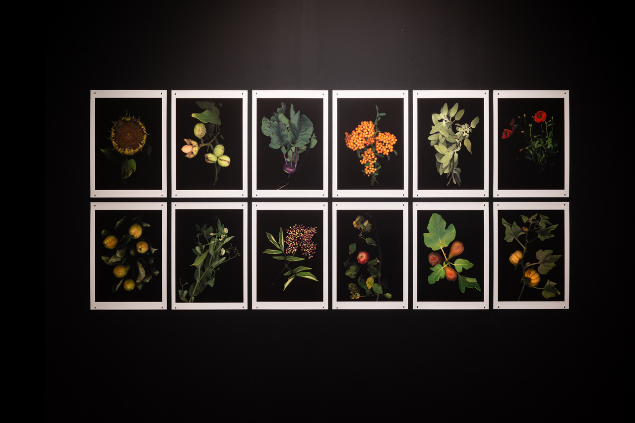 Seasonal ingredients with an autumnal connection, such as pumpkin, root vegetables, chestnuts and other plants, were scanned in high resolution and then prepared by chef Lennart Röbbel into various vegan dishes like minestrone soup, pumpkin seed butter or chestnut pesto. Parallel to the culinary preparation, the plant scans were digitally processed on the computer, printed as contemporary still lifes and presented in the exhibition space as real pigment prints.