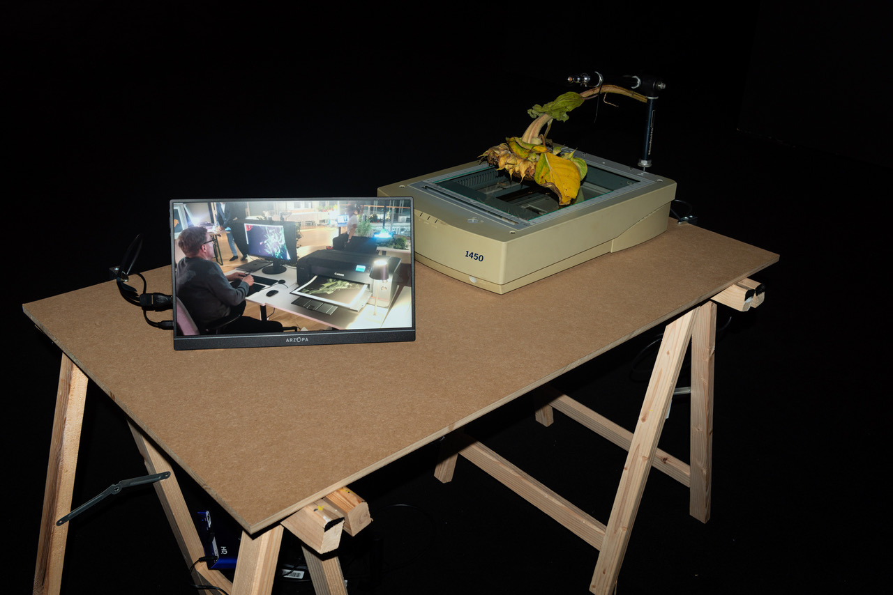 The prints created during the performance are on display in the exhibition. A book about the project was published in 2020 by Hatje Cantz Verlag under the title ‘DI_GI_TA_LIS. A Plant Scan Project’.