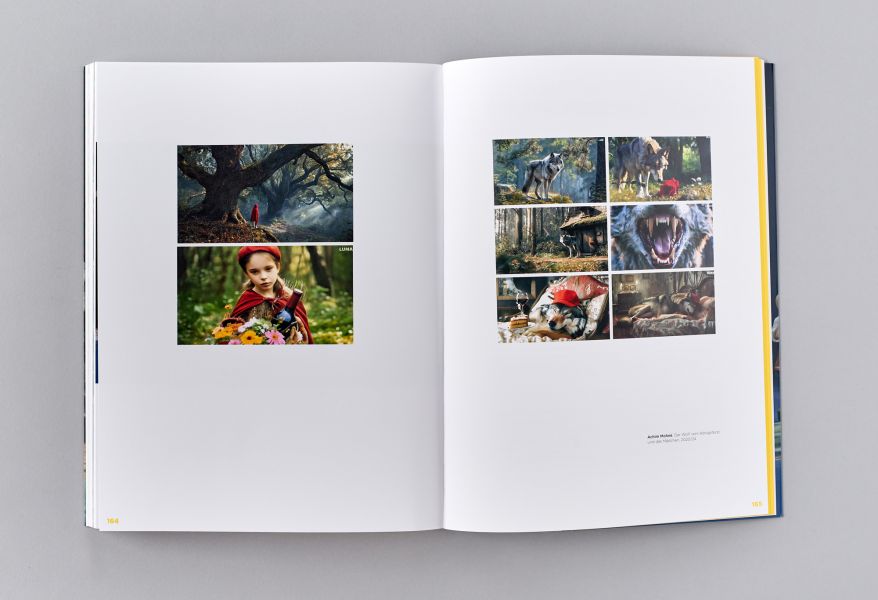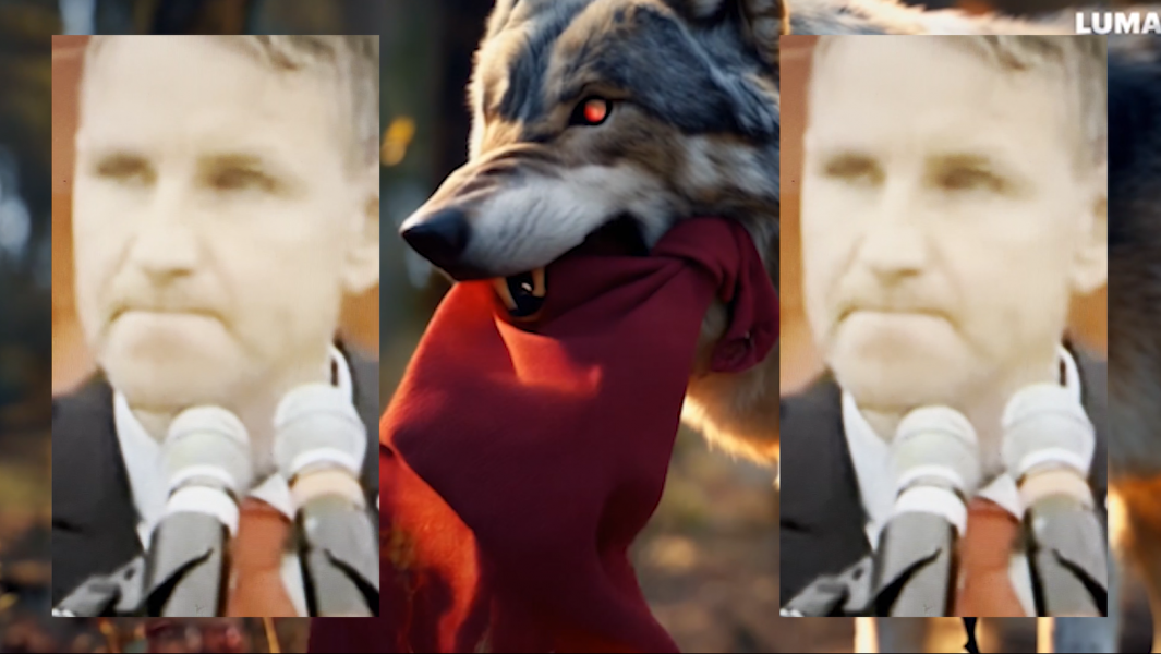 The multimedia post-photographic installation combines the moral fairy tale of Little Red Riding Hood and the wolf with real wolf sightings in Cologne's Königsforst forest and the associated fear of the unknown with a biting analysis of current political upheavals. The critical docufiction, in which text fragments, AI-generated videos and avatars are cacophonously condensed with video fragments of political speeches, tells a contemporary adaptation of the memorable fable, in which the attribution of victim and perpetrator and of fear and guilt are constantly reassessed.