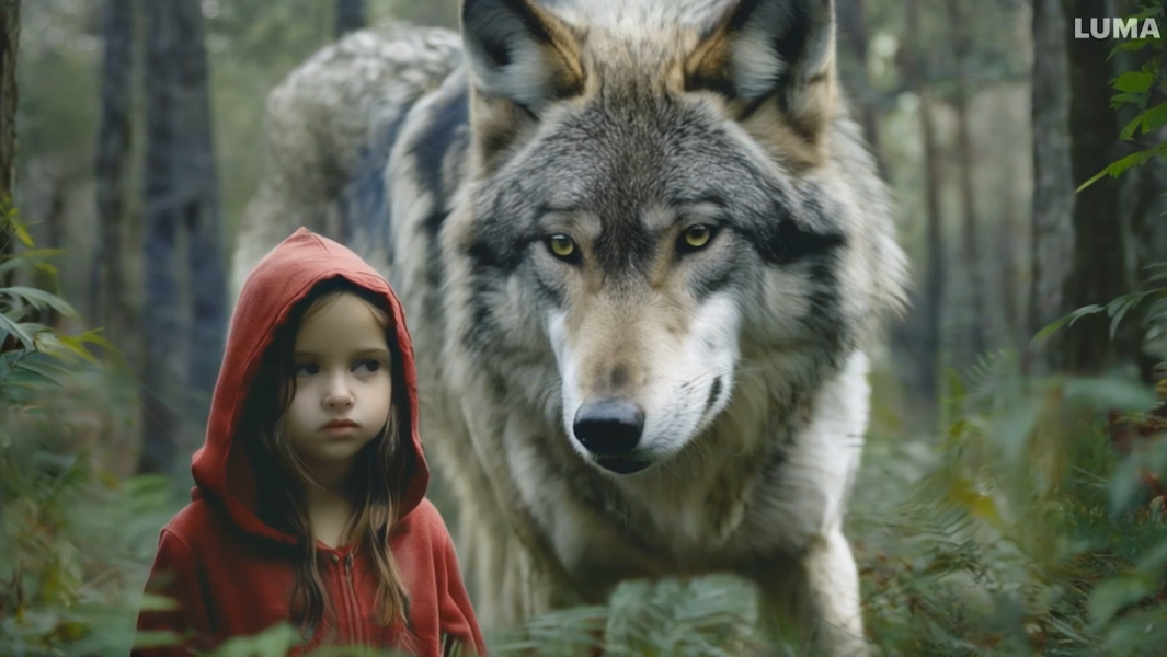 Die Multimediale postfotografische Installation verbindet das moralische Märchen von Rotkäppchen und dem Wolf mit realen Wolfssichtungen im Kölner Königsforst und die damit einhergehende Angst vor dem Fremden mit einer bissigen Analyse gegenwärtiger politscher Umbrüche. Die kritische Dokufiktion, in der sich Textfragmente, KI-generierte Videos und Avatare mit Videofragmenten politischer Reden kakophonisch verdichten, erzählt eine zeitgenössische Adaption der einprägsamen Fabel, in der die Zuweisung von Opfer und Täter und von Furcht und Schuld stetig neu bewertet werden.