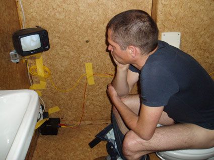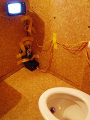 In this close-circuit video installation, toilet users can watch themselves while using the toilet on a screen in their own toilet cubicle. In contrast to the work series ‘For your own Safety these facilities are being monitored by CCTV’, which simulates the impression of live broadcasts from the toilet rooms into the exhibition rooms, this installation is not only giving an impression: the toilet user is indeed watching live-recorded material, however he or she remains in the privacy of his/her own videographic self-observation.