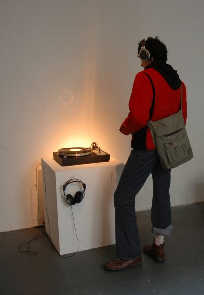 This sound work develops over a period of six weeks. A specially designed record, 'filled with an empty groove', collects the dust in the installation space. The empty groove collects the dust particles, which in turn move the needle. In this way the sound changes from total silence to a crackling and thundering music.