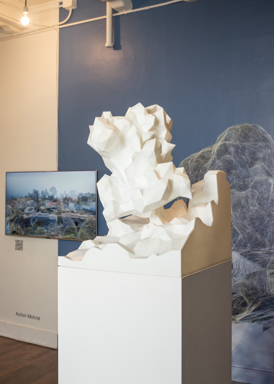 The exhibition "Whispering Bells" at O-Town House gallery is the kickoff show for the 30-year-anniversary of Villa Aurora showing works of artists spanning the many years of a special residency program. Achim Mohné will present his GOOGLE-EARTH-MODEL.28, a detailed 3D model of the building in a multimedia installation, bringing Villa Aurora into the gallery space as both a site of memory and projection.