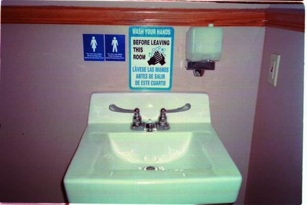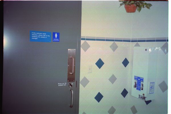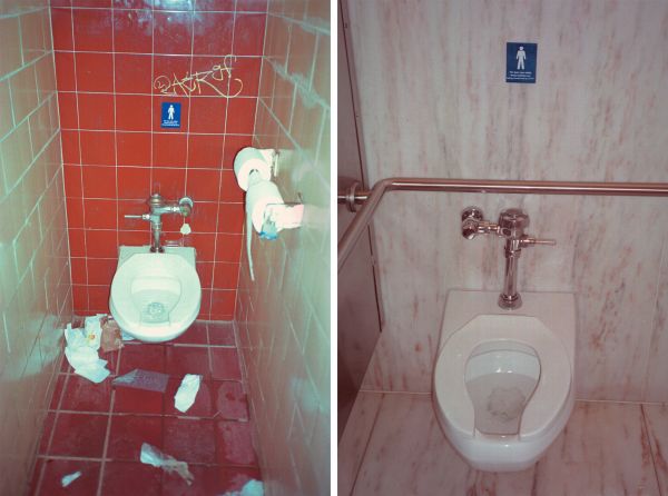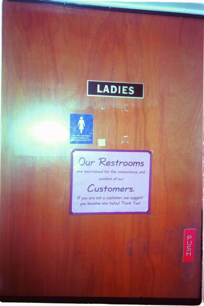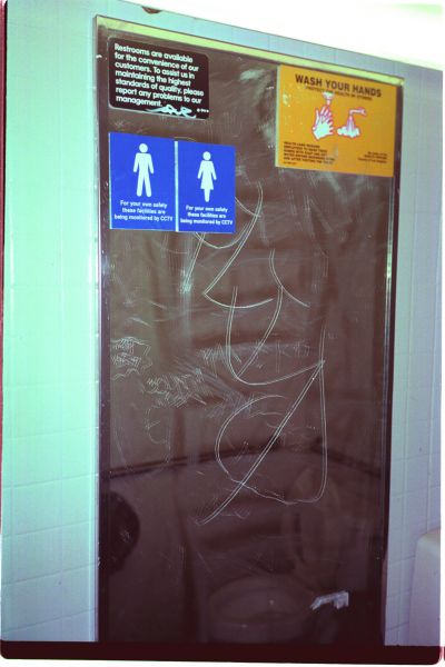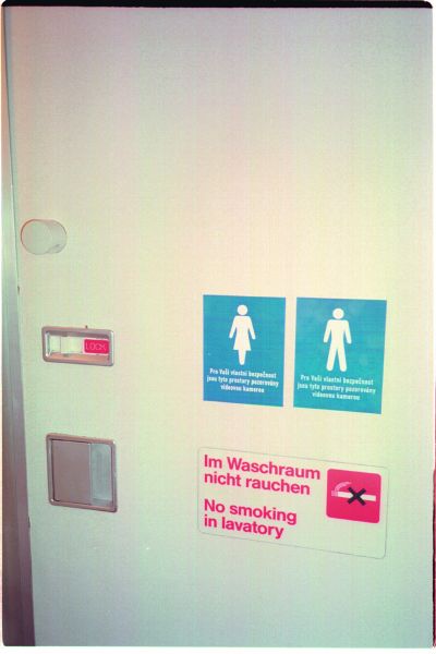 Developed in the framework of the exhibition FOR YOUR OWN SAFETY at Ludwig Forum für Internationale Kunst Aachen in 2001, this public intervention was set out to launch at approx. 500 public toilets in Aachen: in museums, theatres, public institutions, restaurants, pubs, offices, etc. and was continued worldwide. Stickers with the text “For your own safety these facilities are being monitored by CCTV” have been installed at numerous places mainly in Germany and the US to expand the exhibition in the public space. The photographic documentation of the intervention was presented in the Aachen museum exhibition and constantly being updated.